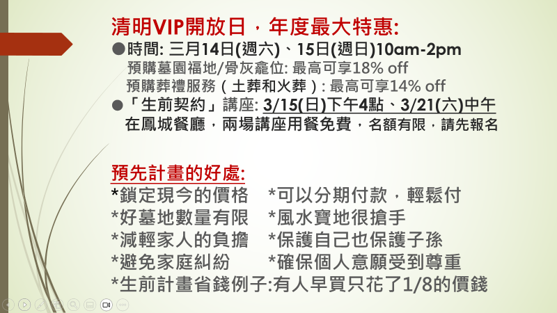 • Memorial Oaks清明VIP開放日與生前契約講座,享受全年最大折扣