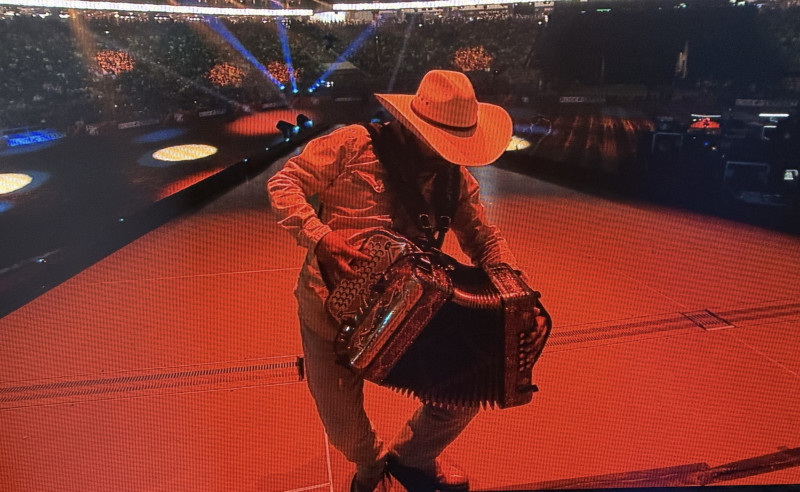 【美南新聞泉深】2026年3月12日晚,休斯頓NRG體育場燈光璀璨,第94屆休斯頓牛仔節(RODEOHOUSTON)迎來當代美國鄉村音樂最具影響力的歌手之一 Chris Stapleton。在超過七萬名觀衆的見證下,這位以渾厚嗓音與靈魂樂風格著稱的鄉村音樂巨星,再次登上休斯頓牛仔節標志性的星形舞台,爲觀衆奉獻了一場充滿力量與情感的音樂之夜。當晚NRG體育場看台幾乎座無虛席。隨著旋轉舞台緩緩升起,Stapleton戴著標志性的牛仔帽、懷抱吉他出現在舞台中央。沒有炫目的開場特效,也沒有複雜的舞台機關,觀衆卻以雷鳴般的掌聲迎接他的登場。對許多德州觀衆而言,他早已成爲RodeoHouston舞台最受歡迎的“常勝歌手”之一。