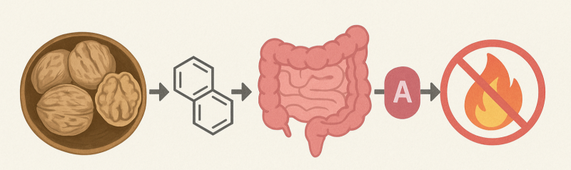 這並非「尿味」,而是經過腸道菌群代謝核桃中的鞣花單寧(ellagitannins)所生成的代謝物,科學家已經確認它具有抗發炎、抗癌、甚至延緩細胞老化的潛在效果。這項發現,讓核桃搖身一變,成為腸道界的「超級英雄」。