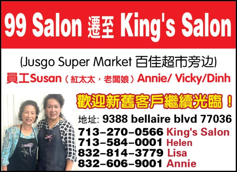 休斯頓 99 Salon 遷至 King’s Salon   歡迎新老顧客莅臨