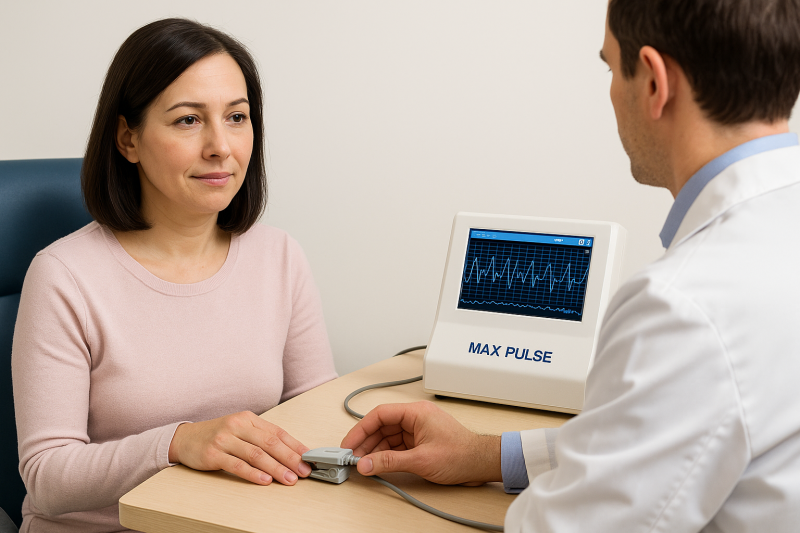Max Pulse 儀器最大突破在於,透過指尖脈波分析(PPG),計算自主神經系統與血管彈性指標,協助使用者在無痛、無侵入方式下,迅速掌握血管健康趨勢。