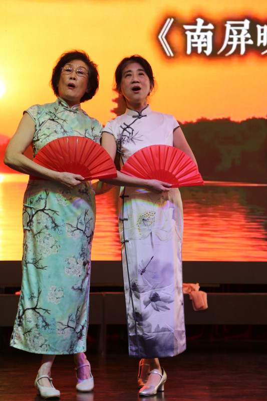 節目的節奏在變化中不斷升溫。古典舞《花間心事》如詩如畫,蓮怡藝社女聲表演唱《南屏晚鍾》《送別》喚起許多人心中的舊時記憶;楊萬青陸曦箫二重奏《憶江南》清雅溫婉,江南煙雨似乎就在音樂中緩緩升起。音樂會的高潮被一段熟悉的旋律點燃。器樂小合奏接連演出了《鐵血丹心》《萬裏長城永不倒》《中國功夫》以及《茉莉花》,英雄氣概與柔美東方交替上演,掌聲一次次在場館中響起。
