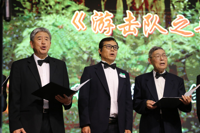 詩朗誦《那沉甸甸的歌》以渾厚的聲線講述深沉的情感,引人靜思;男女聲合唱《長城謠》則以動人的和聲觸碰每位聽者的情緒。隨後的現代舞《墨》將書法意境融入舞蹈動作,傳統與現代碰撞出別具一格的美感。男聲小合唱《遊擊隊之歌》《啊朋友再見》更是讓全場再度熱血沸騰,歡呼不斷。