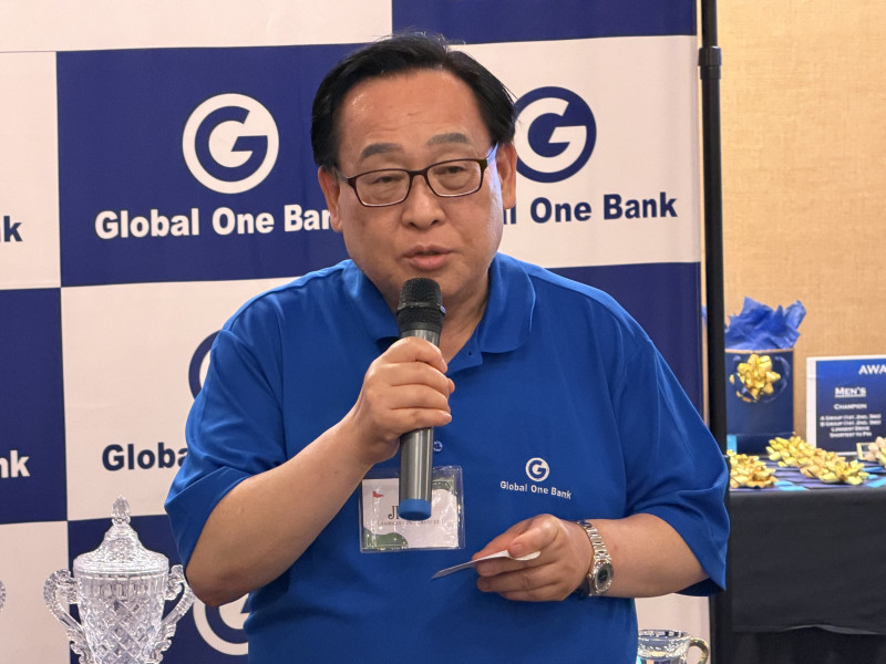晚宴现场座无虚席,气氛热烈。环球第一银行行长 JP Park 在致辞中感谢所有赞助商、志愿者及球友的支持,并分享银行最新发展情况。