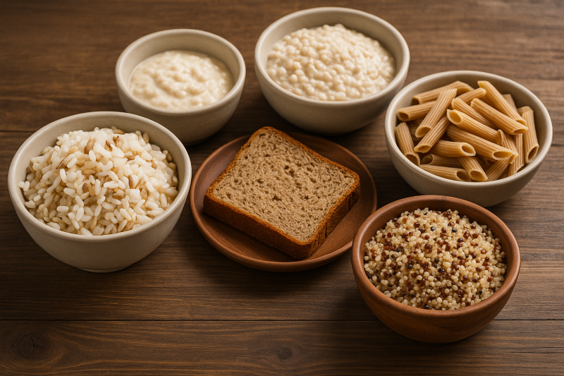糙米、小麥、黑麥:富含不溶性纖維,促進腸道蠕動。