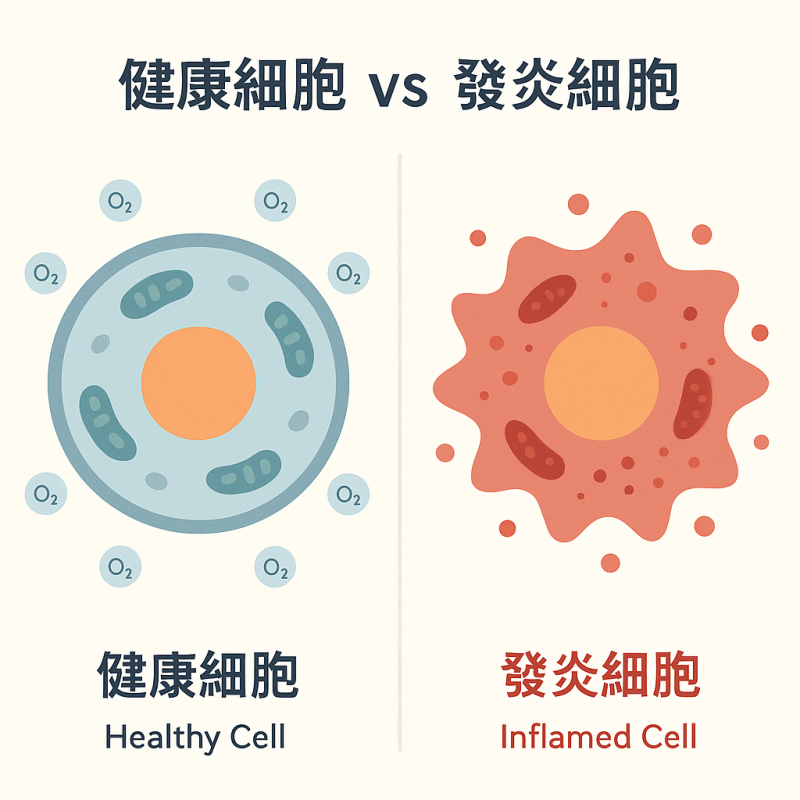 這些研究共同揭示:當身體長期處於輕度發炎狀態時,細胞氧化壓力升高、自由基堆積、免疫系統失調,最終導致疾病連鎖反應。