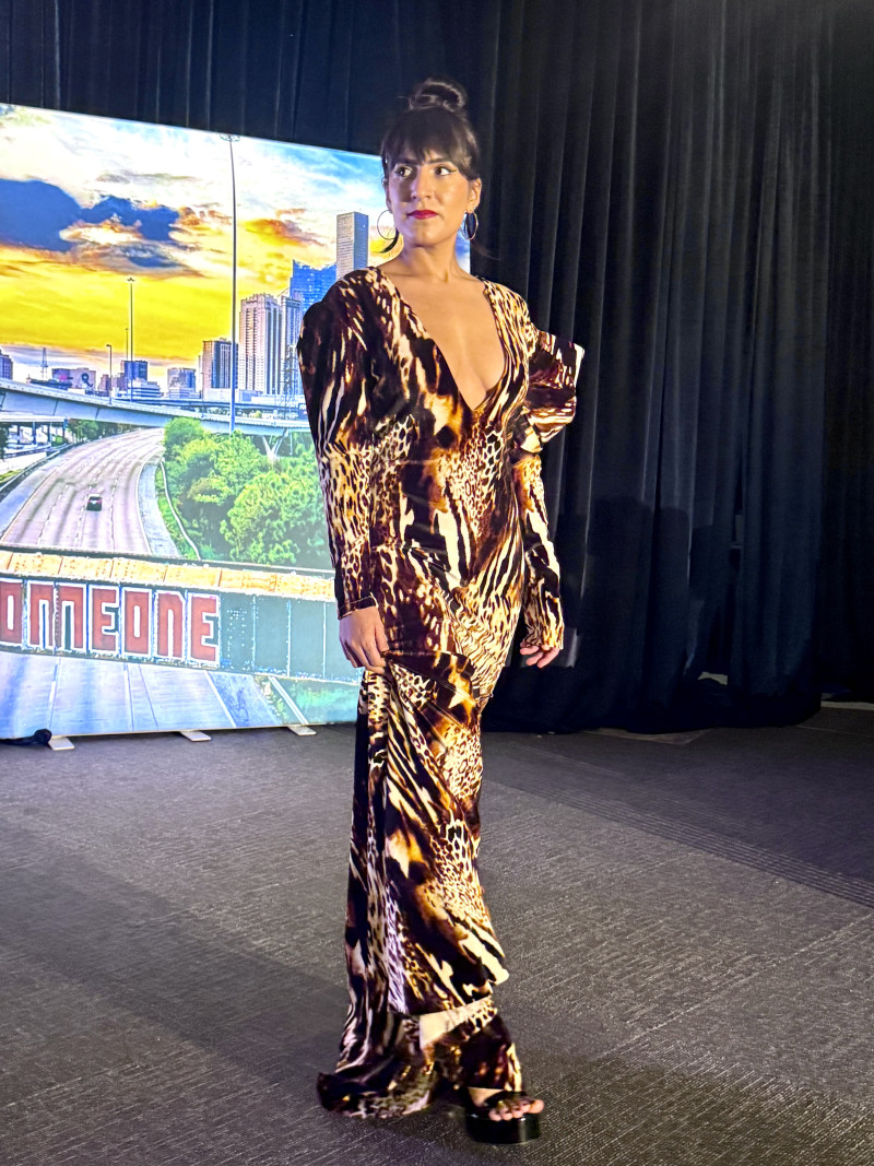 深V剪裁、立體肩線、亮色豹紋,野性與高貴並存。