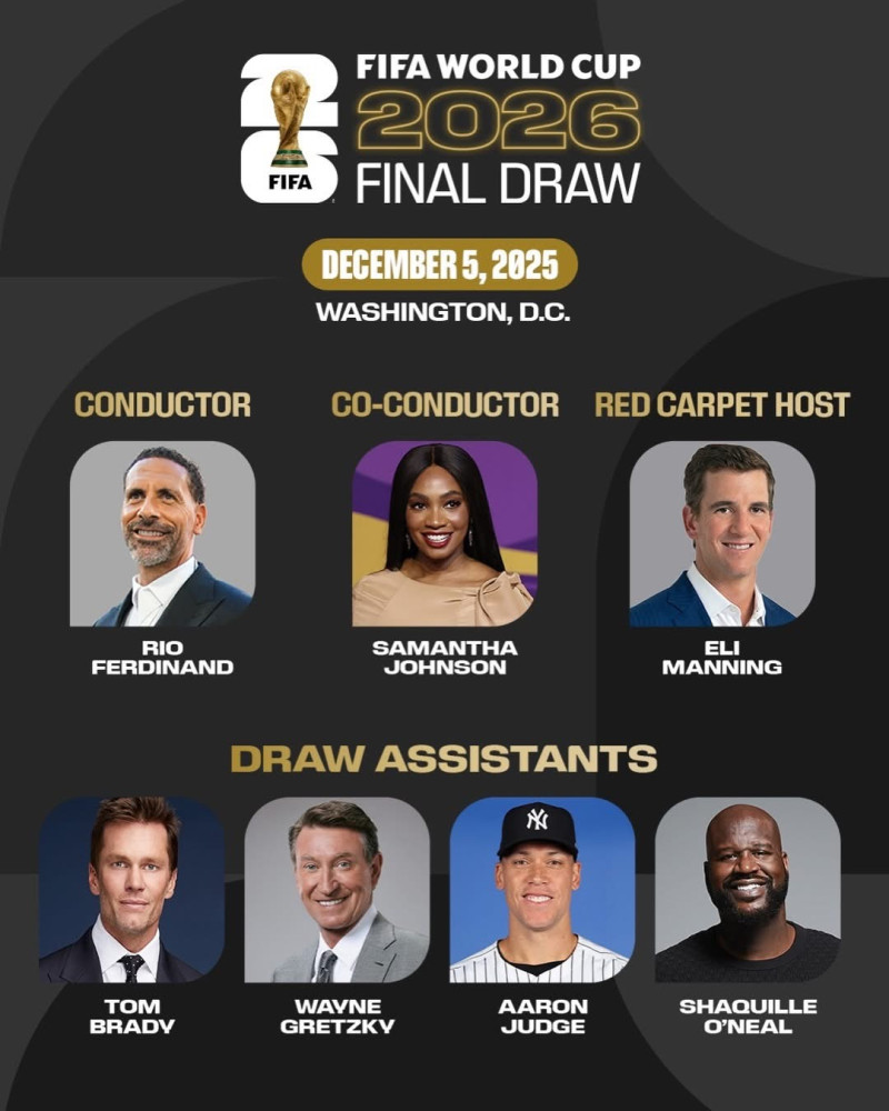抽簽儀式將于 2025 年 12 月 5 日(周五)中午 12:00 ET(18:00 CET) 在肯尼迪中心舉辦,預計吸引全球數以千萬計觀衆同步收看。