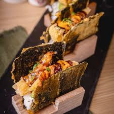 壽司塔可以酥脆海苔塔可殼為基底,搭配新鮮食材,提供多種口味選擇:芒果雪蟹配酪梨炸蝦、辣鮭魚、辣鮪魚等。每一口都是海苔的脆、海鮮的鮮、醬料的香完美融合。Food Eater 特別讚賞:「壽司塔可是今天的明星,海苔和炸蝦的酥脆完美平衡,蟹肉餡料新鮮美味,搭配的醬汁畫龍點睛。」