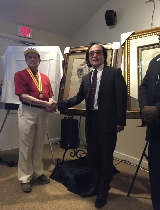他說:“我將無償捐獻特別爲紀念館創作的陳納德將軍銅像及多幅油畫。我希望這些作品不僅是藝術品,更是中美繼續和平交流的象征。”