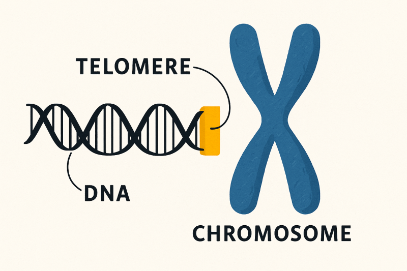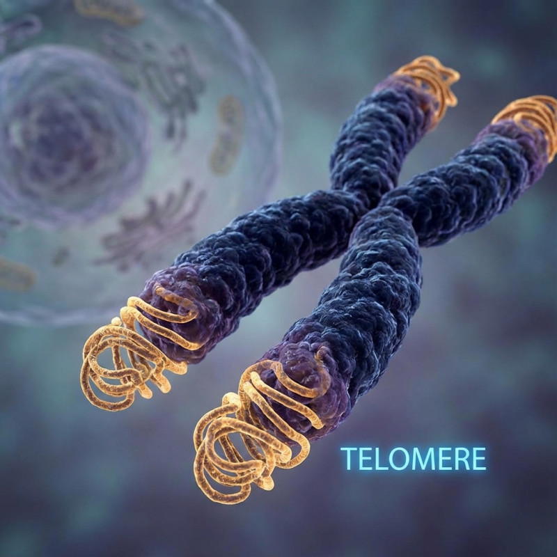 端粒就像「染色體末端的帽子」。每次細胞分裂,它就會稍微縮短。當端粒耗損到一定程度,細胞就會停止分裂、進入衰老(senescence)甚至凋亡。這幾乎是所有哺乳動物的共同宿命,包括人類。
