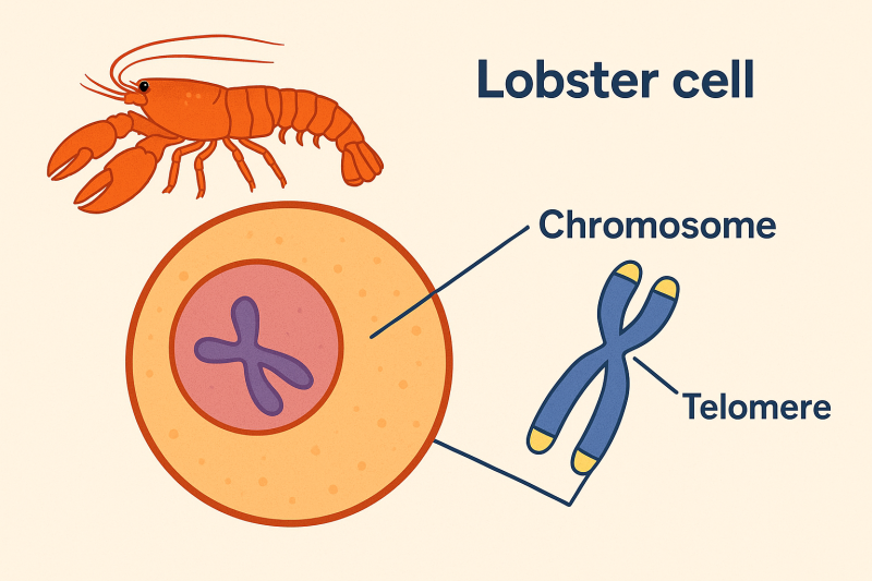 1998 年,科學家 Wolfram Klapper 等人發表了一篇經典研究,震撼了長壽生物學領域。研究發現:成年龍蝦的幾乎所有體細胞(somatic tissues)都有活躍的端粒酶。這意味著牠們的端粒不會像一般生物一樣逐漸縮短。這是科學界首次明確證據指出:龍蝦的細胞幾乎不會因分裂而「變老」。