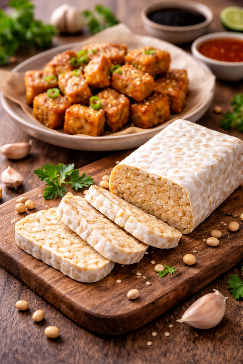 天貝(Tempeh)是許多營養師強烈推薦的素食蛋白。它來自發酵黃豆,蛋白質含量比豆腐更高,胺基酸利用度更佳。