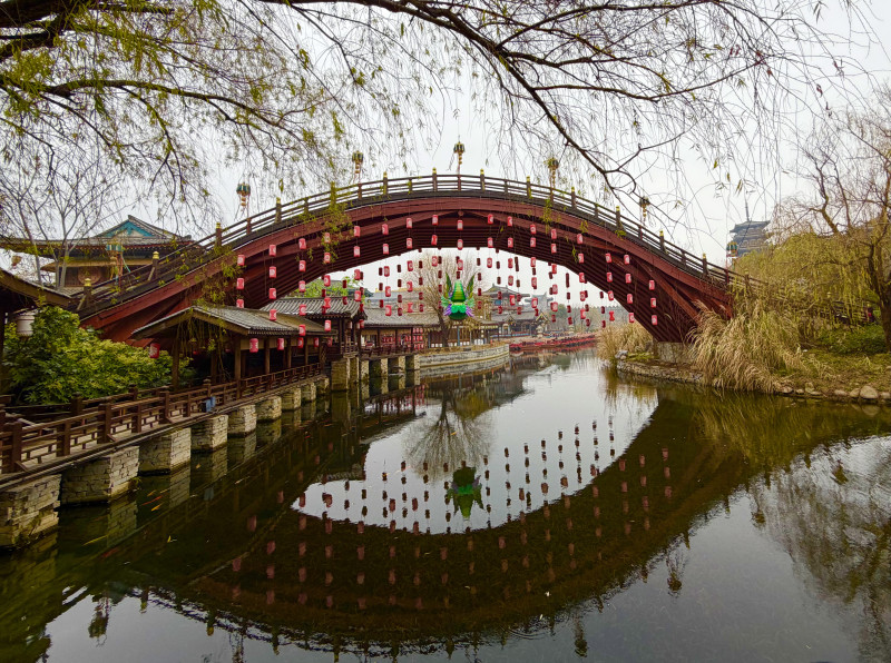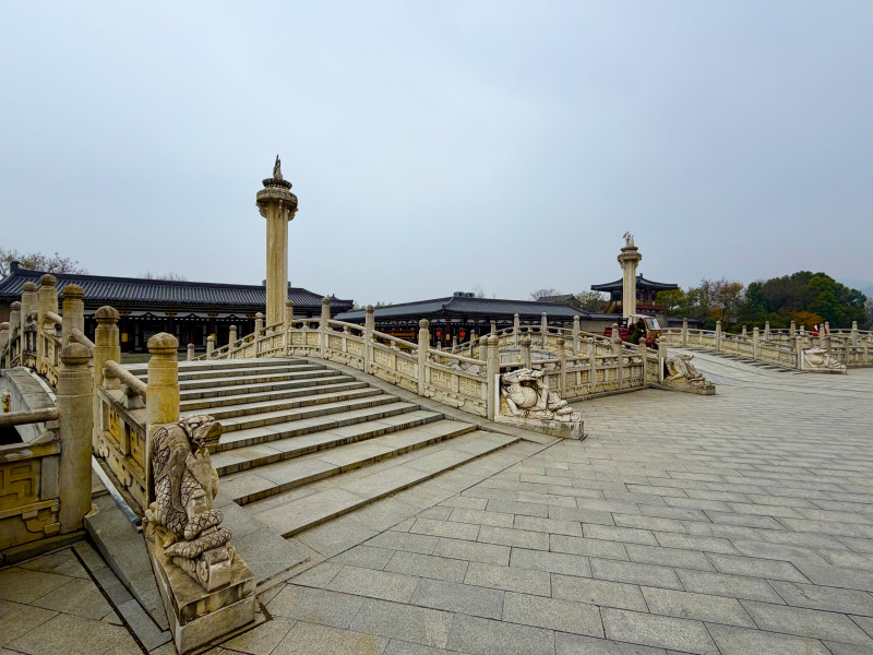 遠望宮阙層疊,如山嶽起伏;近觀石欄橋階,尚留雪痕。雲影掠城,光影遊走,中國盛世唐城在多雲天氣的映襯下,呈現出一種不同于晴日的內斂氣度——不張揚,卻更顯曆史厚重,仿佛千年風雪皆在此刻凝定。