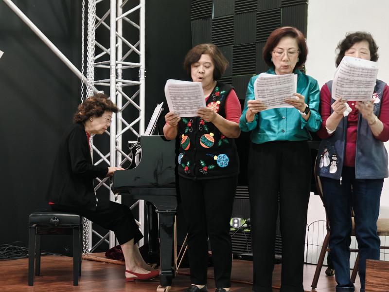 隨後由團員張彩惠、梁娟娟及三位友人,應景獻唱聖誕歌曲,並帶領台下觀