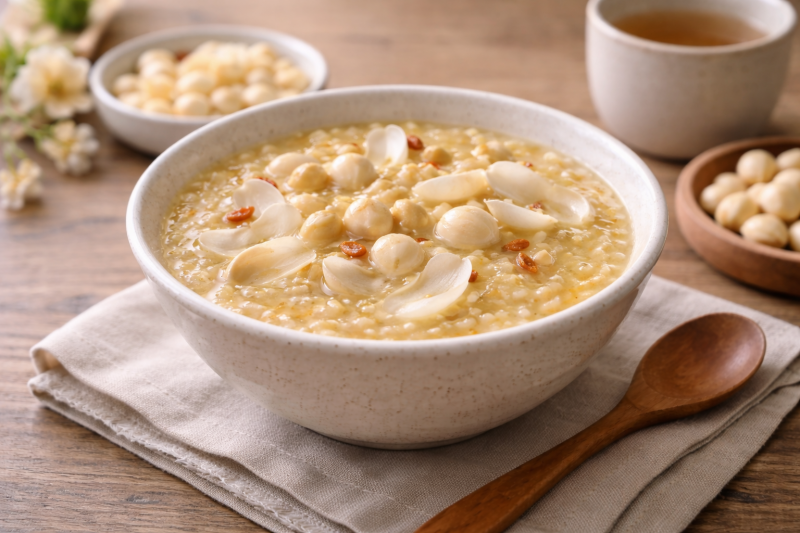 壓力大、睡眠品質不佳者,可在晚餐加入百合、蓮子或小米。這些食材在中醫中被視為「安神」,而其低升糖負荷與鎂、色胺酸等營養素,確實有助於放鬆神經系統。