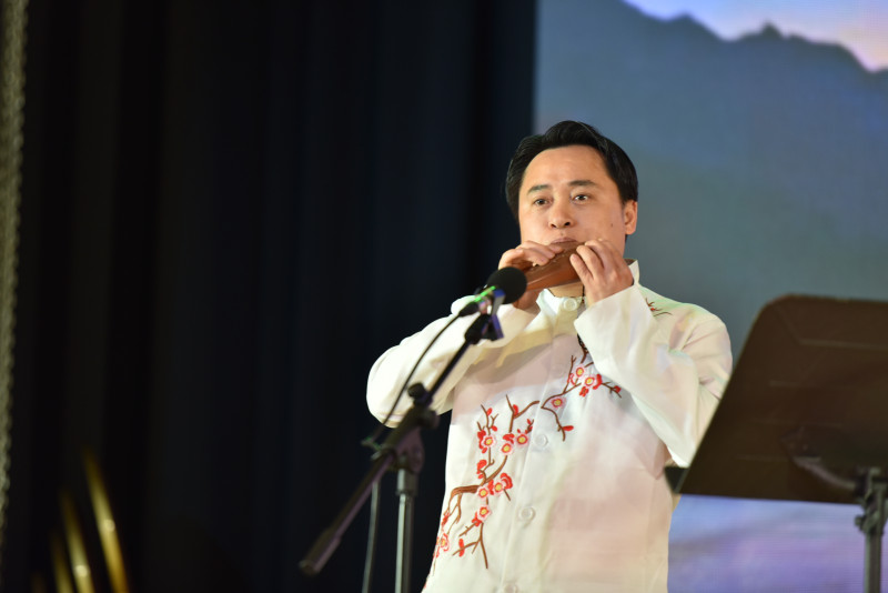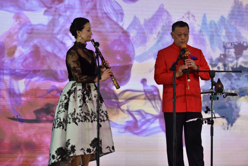 慶典的音樂篇章以中國管弦樂爲核心展開。在全場最受矚目的時刻之一,楊萬青博士與陸曦女士親自登台,分別呈現了獨奏與二重奏。