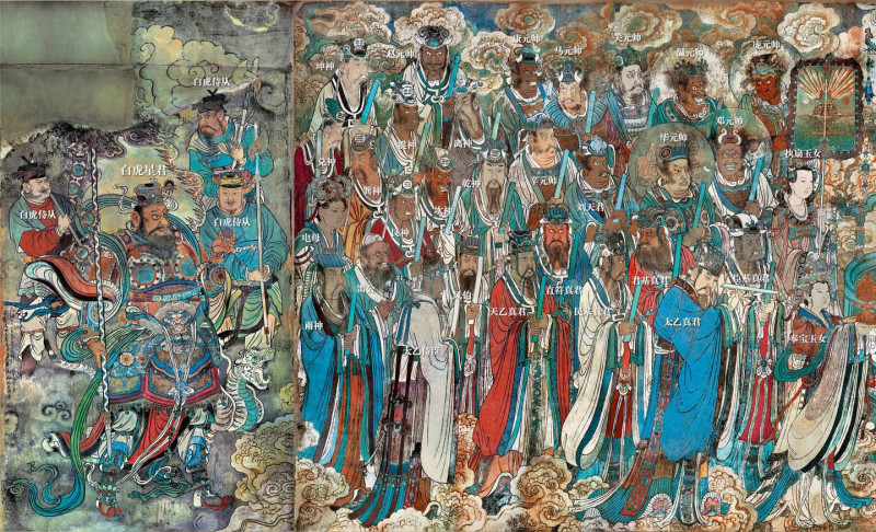 永樂宮《朝元圖》成于元代,其神仙體系嚴格遵循道教宇宙學的層級分工與方位秩序:青龍主東方、春、生發與木氣;白虎主西方、秋、肅殺與金氣。二者分據一方,構成相互制衡的結構關系。