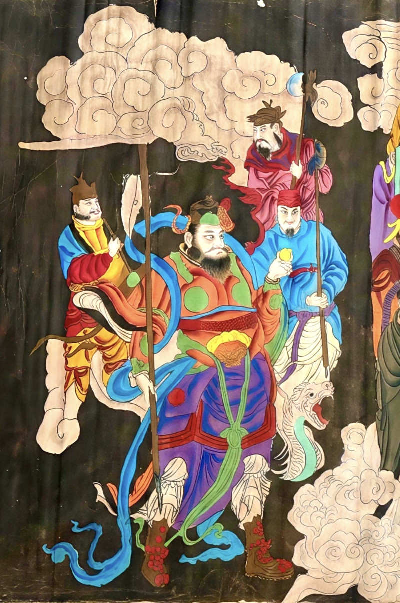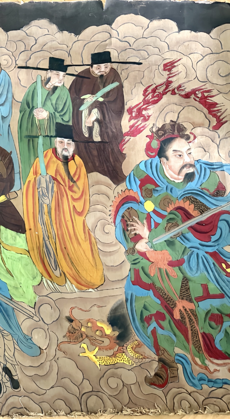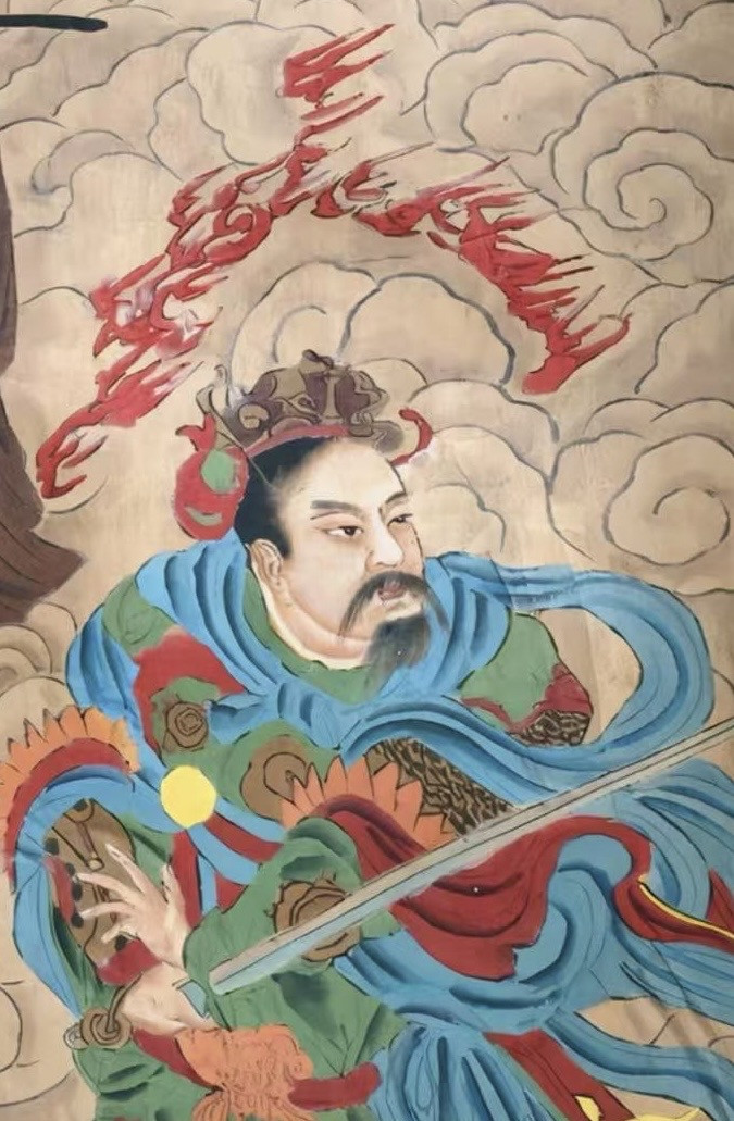 在中國宗教圖像傳統中,火焰形態往往用于指示神祇權能的外顯狀態,強調其正在運行與調度的能動性。青龍神君頭頂的紅焰,並非裝飾性雲氣,而更像是一種對其結構功能的視覺提示,使其形象由靜態存在轉向具備啓動意義的核心節點。
