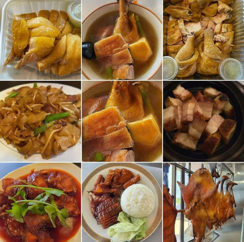 燒鴨、叉燒、豉油雞、脆皮五花肉、北京烤鴨、廣式餛飩、烤乳豬、派對拼盤、各式粥品、家常熱炒、炒河粉等。