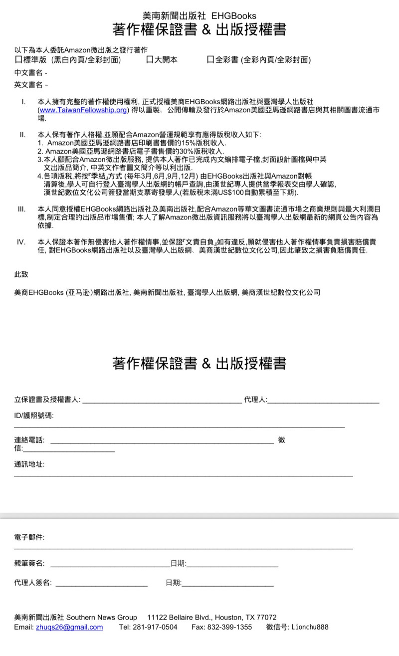 美南新聞出版社同時歡迎有志于出版個人專著的作者聯系合作,涵蓋文化、藝術、武術、學術普及、回憶錄等多種類型,並可通過 Amazon.com 平台實現全球發行。