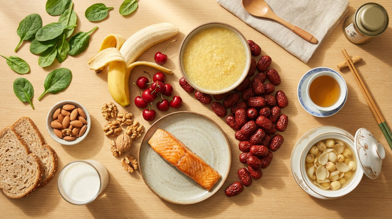 酸棗仁茶(寧心助眠)、小米粥(養心安神)、紅棗(補血養神)、百合蓮子湯(滋陰潤燥)
