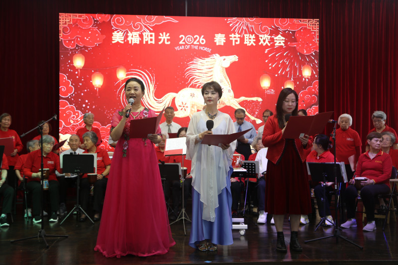 今天(2月13日)上午,隨著農曆新年的腳步臨近,陽光長者中心舉辦了年味濃郁的春節聯歡會。寬敞明亮的活動大廳座無虛席,來自不同族裔的年長者齊聚一堂,共迎新春。現場歡歌陣陣、舞姿翩翩,笑聲與掌聲此起彼伏,處處洋溢著溫馨的節日氣氛。