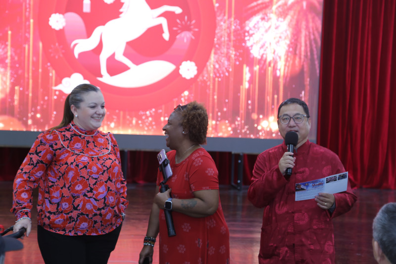 本場馬年春節聯歡會由王老師與 Katie 共同主持。整台晚會的一大特色是多元文化的交融與匯聚。在這裡,觀眾不僅欣賞到富有韻味的中國傳統舞蹈和樂器演奏,還感受到韓國節日文化的獨特魅力。悠揚的歌聲、優美的舞姿此起彼伏,為現場增添了濃濃的節日氛圍。