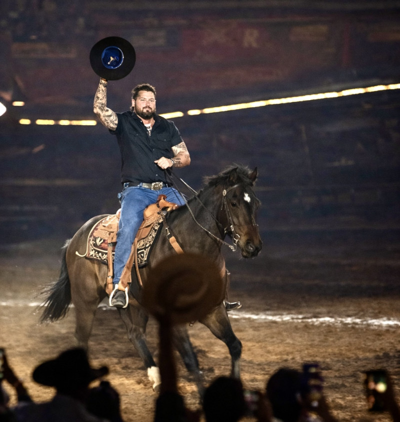 在演出尾聲,Koe Wetzel以一場極具牛仔節傳統特色的方式謝幕——騎馬離開舞台。這一經典畫面爲整場演出畫上句號,也象征著他成功完成了在RodeoHouston的曆史性首秀。