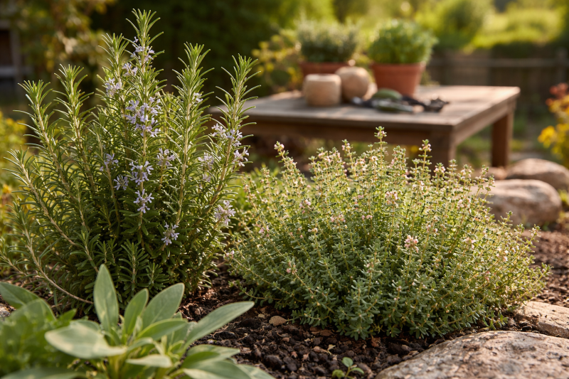 綜合來看,德州氣候適合「地中海型香草為主,輔以適度遮陰植物」的策略。迷迭香、百里香與鼠尾草可作為核心耐熱骨幹;羅勒與檸檬香蜂草則作為季節性或半遮陰補充。