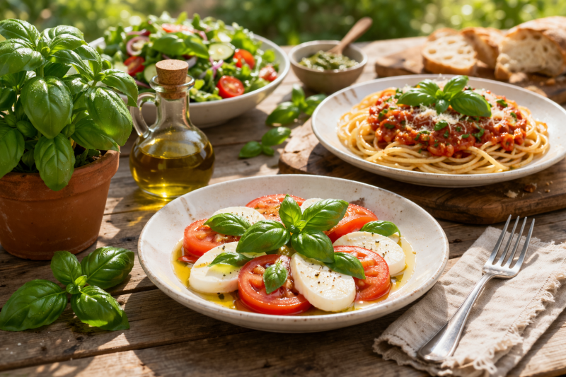 從健康角度,《Journal of Nutrition》研究指出,羅勒富含多酚與抗氧化物,有助於心血管健康與抗發炎。除了料理外,也可泡茶或製作羅勒水。