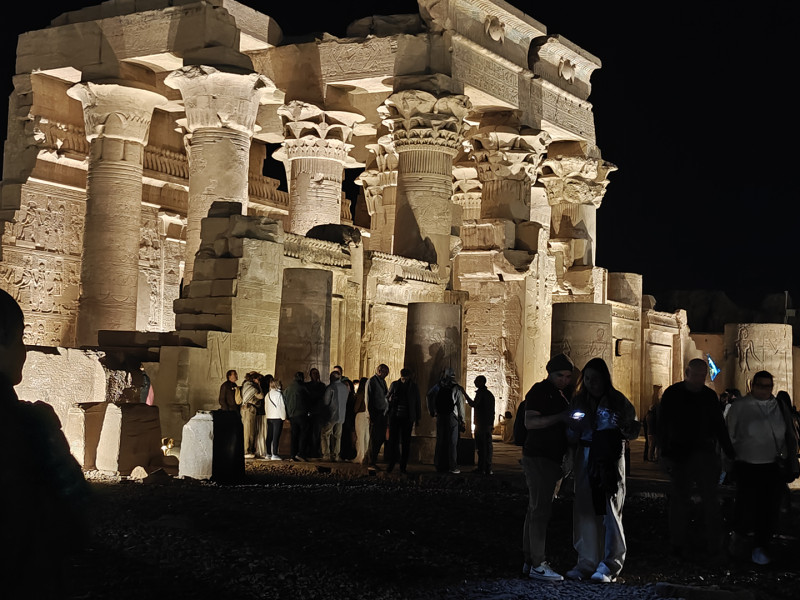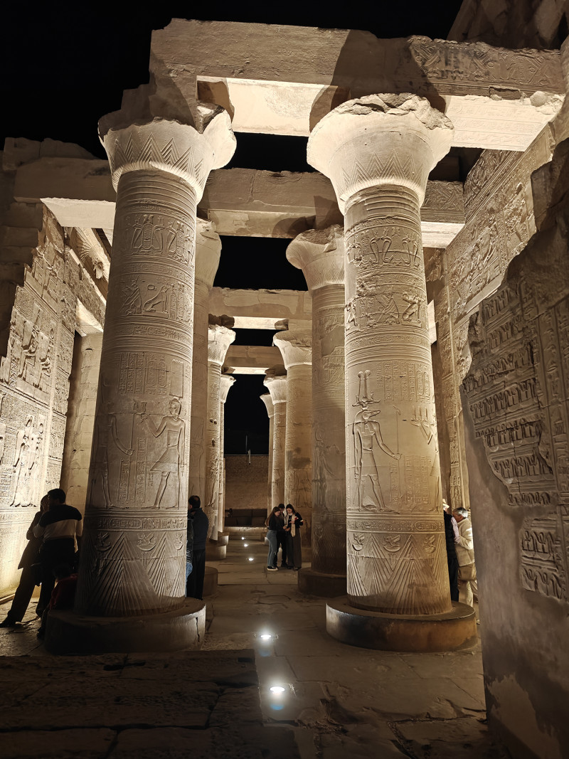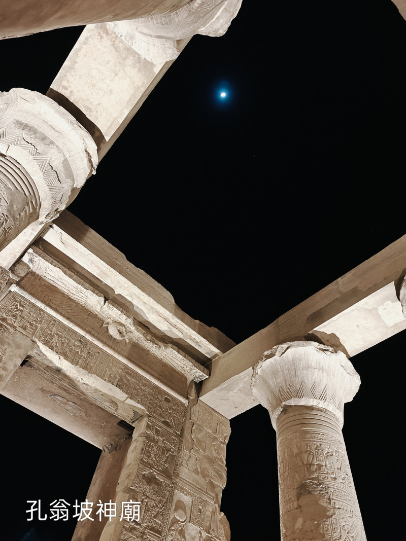 踏著夜色步入孔翁坡神廟(Temple of Kom Ombo),這座具有雙重神性的建築奇觀。