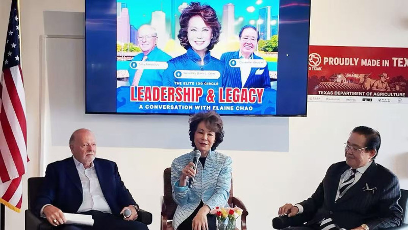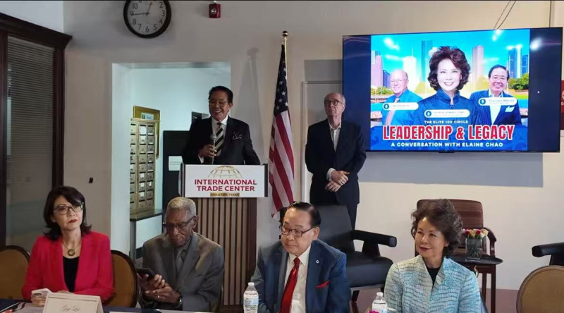 4月23日,美國前勞工部長、前交通部長Elaine Chao到訪休斯頓,出席在休斯頓國際貿易中心舉行的專題交流活動 Leadership & Legacy: A Conversation with Secretary Elaine Chao,與當地社區代表分享國家亞太裔曆史博物館籌建進展,並參加紀念植樹活動,隨後參觀美南新聞大樓前新建成的環球第一銀行大樓。
