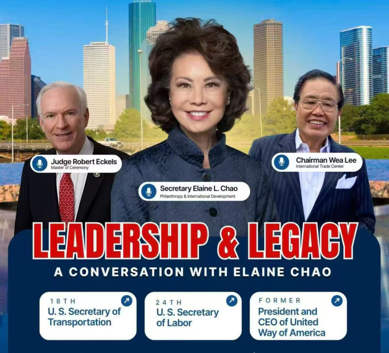 當天活動由前哈裏斯縣縣長Robert Eckels主持,國際貿易中心主席Wea Lee陪同趙小蘭及多位休斯頓政商界代表共同出席。現場嘉賓涵蓋公共事務、工商界及文化機構人士,圍繞亞太裔曆史傳承與公共參與展開深入交流。