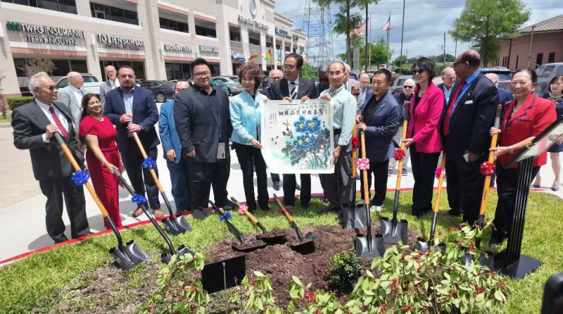 活動結束後,與會嘉賓共同前往紀念花園舉行 Red Holly Tree(紅冬青)植樹儀式。趙小蘭親自參與植樹,並與社區代表合影留念,以象征方式表達對亞太裔曆史傳承和社區建設的支持,也寓意亞裔群體在美國社會持續紮根、生長與延續。