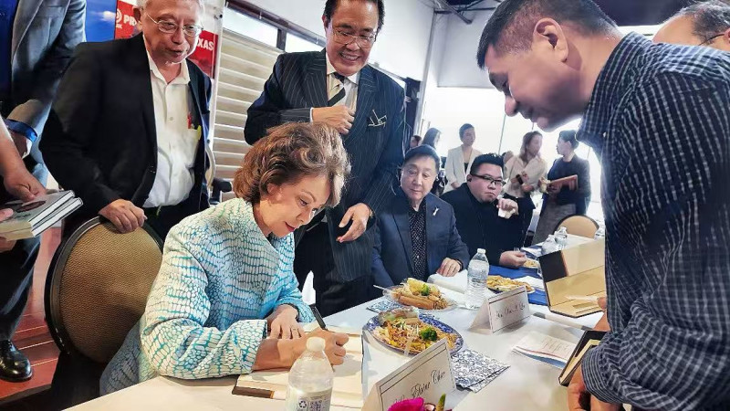 (Elaine Chao在活動現場爲讀者簽書留念,Wea Lee陪同交流)