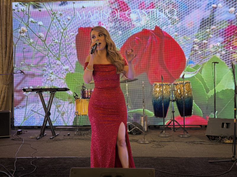 当红歌手 Marisol Castillo 身着红色闪耀礼服,在玫瑰花背景中献唱《Dama del Bolero》,以饱含热情的嗓音与优雅姿态,将拉丁音乐的浪漫与力量演绎得淋漓尽致,为群星闪耀的夜晚画上完美句点。