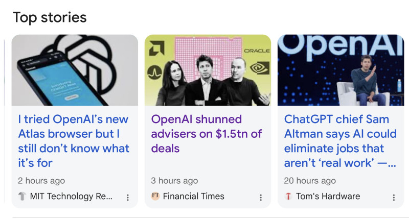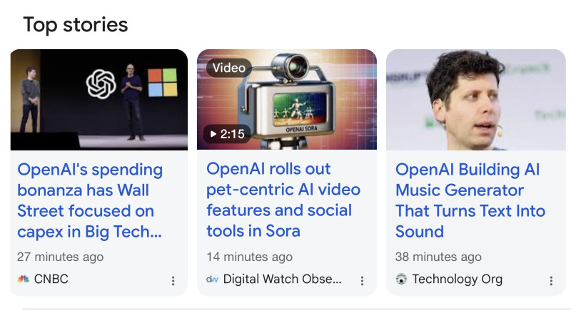 无论是 Reuters、Axios、彭博社、CNBC、MIT科技评论,还是 《金融时报》,几乎所有国际主流媒体的头条版面都被这家位于旧金山的人工智能巨头占据。从政策战略到产品创新,从基础设施投资到AI音乐生成,从Sora视频功能到Atlas浏览器,OpenAI的每一项动向都在引爆全球舆论与资本市场的关注。