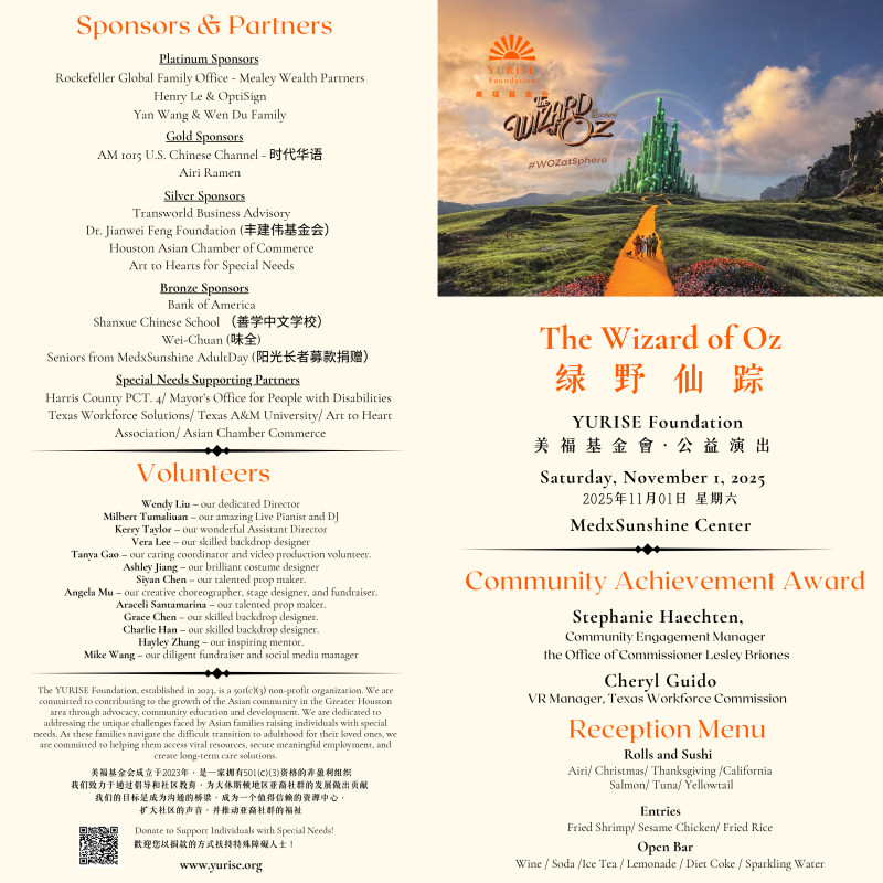 11月1日下午,位於休士顿的阳光中心座无虚席,一场别开生面的公益音乐剧《绿野仙踪》(The Wizard of Oz)在此温情上演。