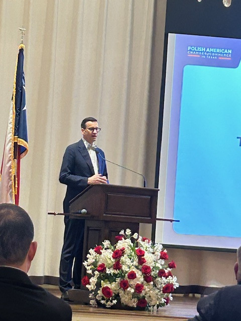 He then shifted to the broader transatlantic relationship, discussing cooperation between Poland and the United States, with a special mention of Texas and its critical role in energy, technology, and defense industries. He noted that today’s global trade and investment are not just about cold numbers and contracts, but about how nations share risk and shoulder responsibility with their allies.