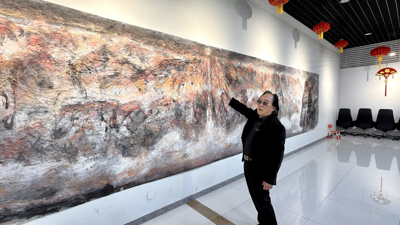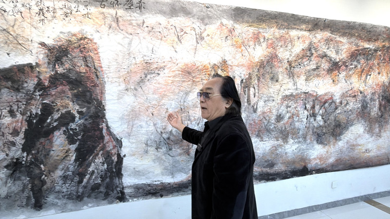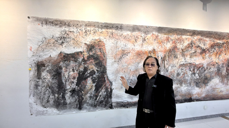 【美南新闻泉深】千年之前,苏东坡夜游黄州赤壁,江月在天,水波无尽,一段历史的风烟与个人的生命感喟交汇,化作《赤壁赋》《念奴娇·赤壁怀古》这样的千古绝唱;千年之后,国际艺术家王鑫生大师,重返这一精神原点,以十二米之长、两米之高的恢宏水墨长卷《赤壁怀古》,让诗意重新化为可感、可视、可游、可入的当代艺术境界。