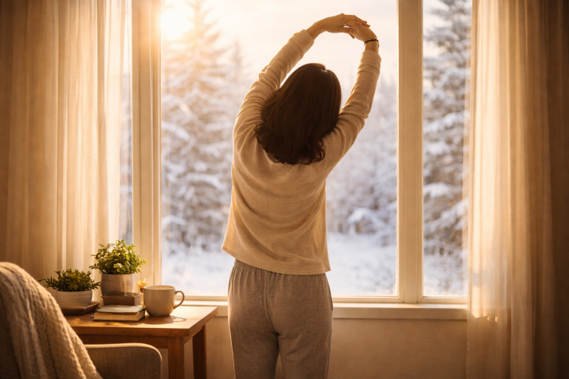寒流期间,维持规律作息尤其重要。固定的起床与入睡时间、白天尽量靠近窗边活动、夜晚减少萤幕刺激,都是稳定情绪与睡眠的关键。即使天气寒冷,也建议在白天安排短暂的户外日照时间,帮助身体维持正常的昼夜节律。