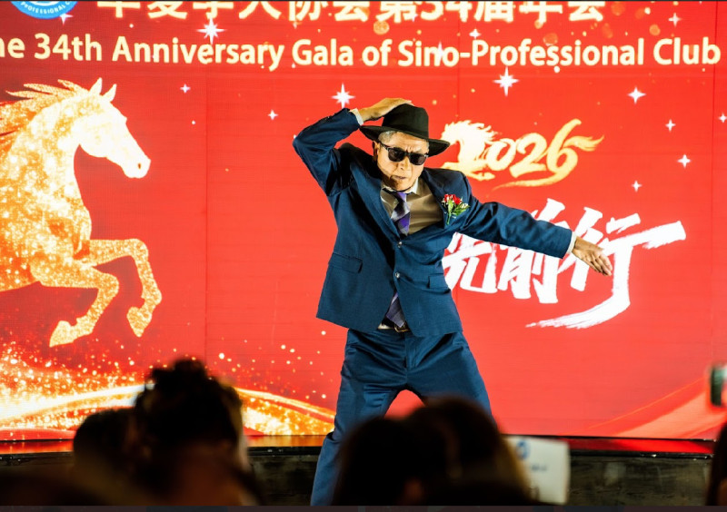 文艺与公益环节同样成为当晚亮点。华夏学人协会理事会成员集体登台,合唱《华夏学人会歌》,旋律庄重而激昂,象征着团结、传承与使命。随后,多项由会员与青年专业人士参与的文艺节目轮番上演,涵盖合唱、串唱、舞蹈及跨文化表演,充分展现华裔社区多元而蓬勃的文化活力。
