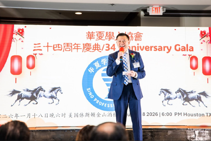 【美南新闻泉深】2026年1月18日,休斯顿华夏学人协会(Sino Professionals Club,SPC)34周年庆典晚宴暨会长交接仪式在金山酒家隆重举行。来自政界、侨界、学界、工商界及青年专业群体的嘉宾齐聚一堂,共同见证协会新旧会长交接的重要历史时刻,回顾三十四载薪火相传、砥砺前行的发展历程,并就华人专业社群在新时代的角色与使命展开深入交流。