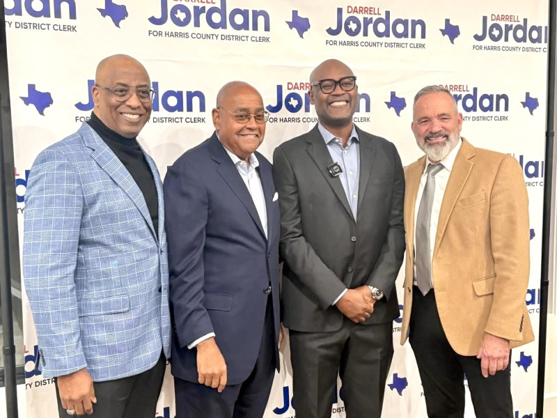 【美南新闻泉深】哈里斯县(Harris County)书记官(District Clerk)候选人、前刑事法院法官 Darrell Jordan 近日宣布,获得哈里斯县两位最具影响力的民主党民选官员——县长(County Judge) Lina Hidalgo 与县专员 (Commissioner)Rodney Ellis 的联合背书。这一重磅支持,被普遍视为本次书记官选举中的关键节点,使 Jordan 的选情明显升温。