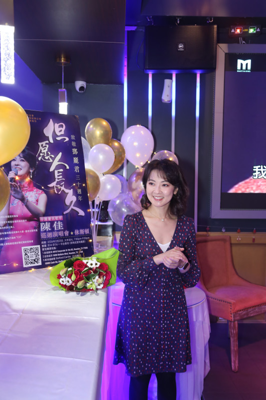 (美南新闻 休斯顿报导) 被华语乐坛及邓丽君家人一致誉為「邓丽君歌曲最佳传承人」的着名歌手陈佳,其《但愿人长久》全球巡迴演唱会——休斯顿站将於2月23日晚隆重登场。在演出前夕,陈佳粉丝见面会於週日温馨举行,為即将到来的音乐盛会预热暖场。