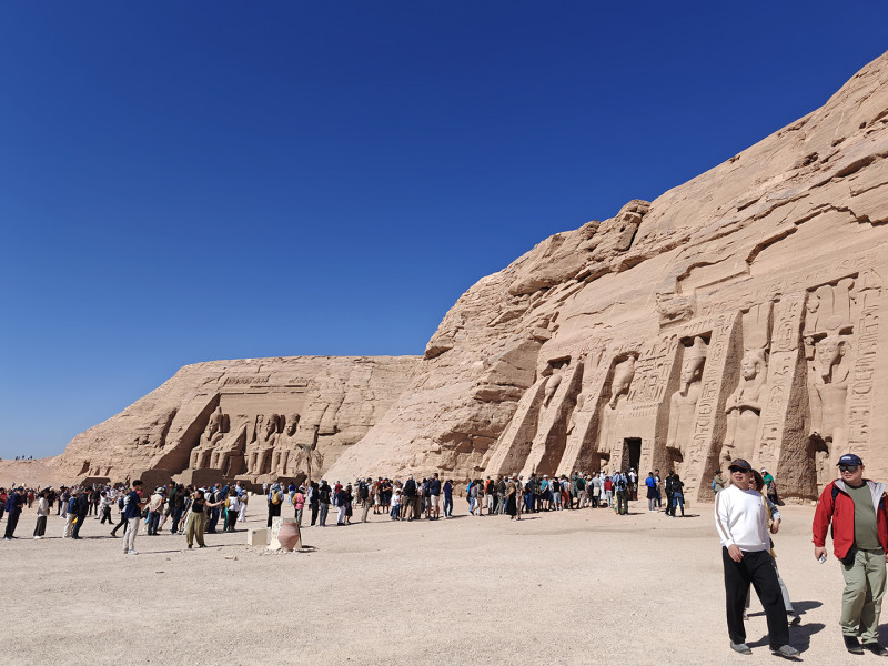 当我们终於抵达阿布辛贝神庙时天已大亮,才八点已艶阳高照,游客如织。