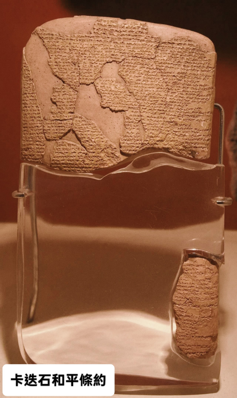 卡迭石战役(约西元前1274年之后),是拉美西斯二世最着名的战争,对手是强大的赫梯帝国(今土耳其加部分叙利一带),这场战役其实并没有真正的嬴家,双方最后(公元前1259年左右)签订了人类歷史上最早而且非常先进的和平条约。内容包括:互不侵犯、共同防御(军事同盟)、引渡逃亡者。这个条约有两个版本:刻在神庙墙上的埃及版本,和泥板楔形文字的赫梯版本。是人类最早的国际关係规则的雏形,今天在纽约联合国总部就展示有这份条约的复製品。