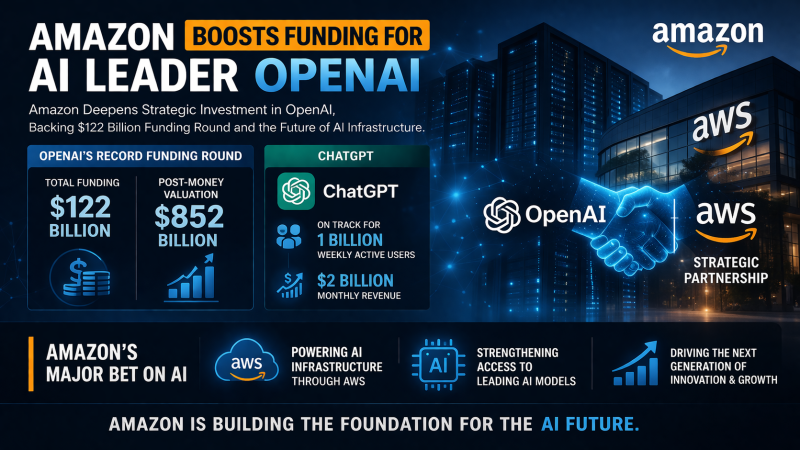 【美南新闻泉深】在全球人工智能竞赛愈演愈烈之际,科技巨头亚马逊(Amazon)正以前所未有的力度加码AI核心赛道。多家媒体披露,OpenAI近日完成高达1220亿美元的超级融资轮,公司估值升至约8520亿美元,而亚马逊作为关键战略投资方之一的深度参与,成为本轮融资最受关注的焦点之一。