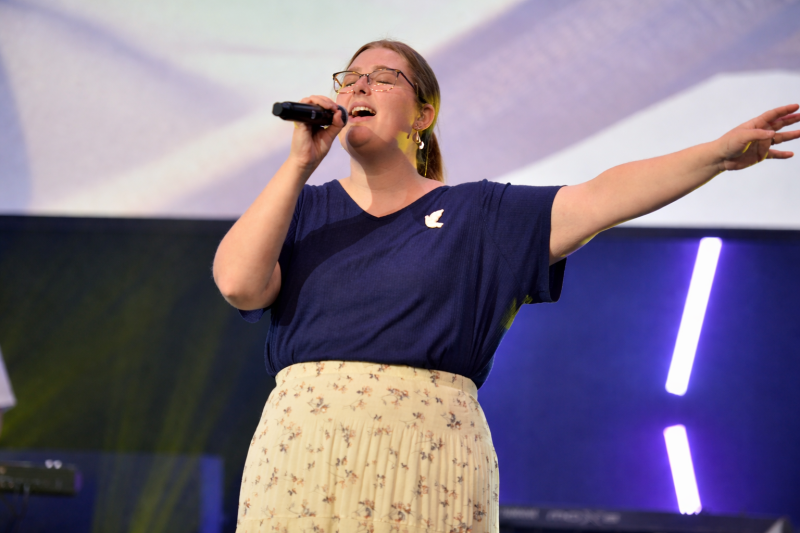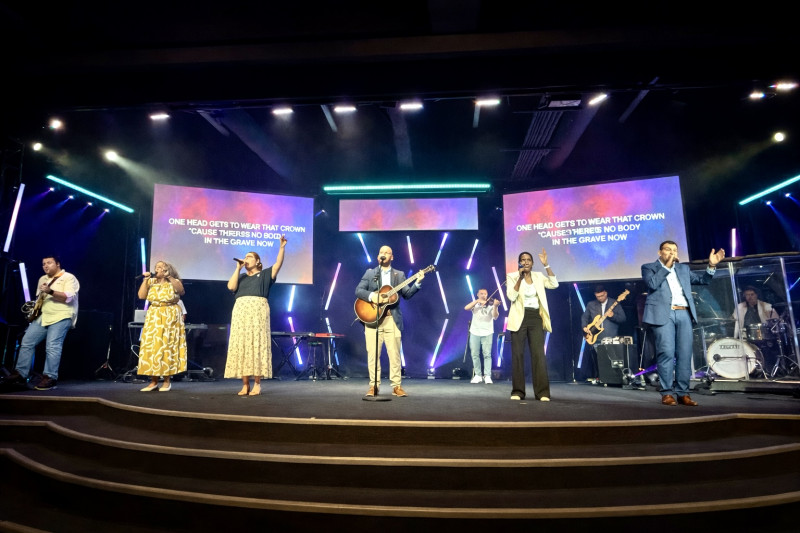 随后,乐队再次奏起音乐,旋律比开场更加深沉而有力量。会众再次站立,有人轻声祷告,有人举手回应,整个空间弥漫着一种宁静而坚定的信仰氛围。